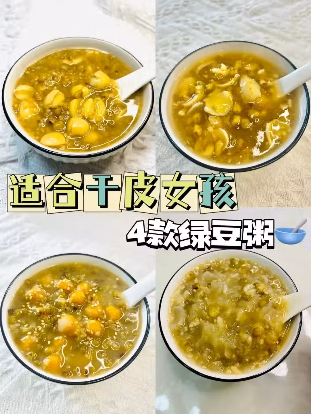 🥣這裡有四款特別為黑黃皮、干皮女孩準備的綠豆粥食譜,不僅能消暑解渴,還能滋潤肌膚!試著輪流煮來嘗嘗,讓你的肌膚在夏天也能水潤光澤,美麗又清爽!✨