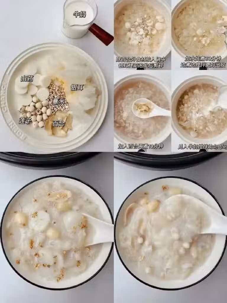 食材: 山藥 銀耳 薏米百合 蓮子 牛奶