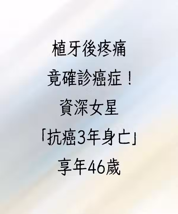 植牙後疼痛竟確診癌症!資深女星「抗癌3年身亡」享年46歲!