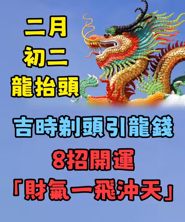 農曆二月初二的節氣,正處在雨水、驚蟄和春分之間,很多地方已開始進入雨季,這時農作物非常需要雨水的時期,人們非常希望通過對龍的祈求行為,來實現降雨的目的,祈求一年豐收、平安、順遂。 名門命理教育協會創會理事長楊登嵙分享開運8招,財氣像龍一飛沖天,身體健康保平安。