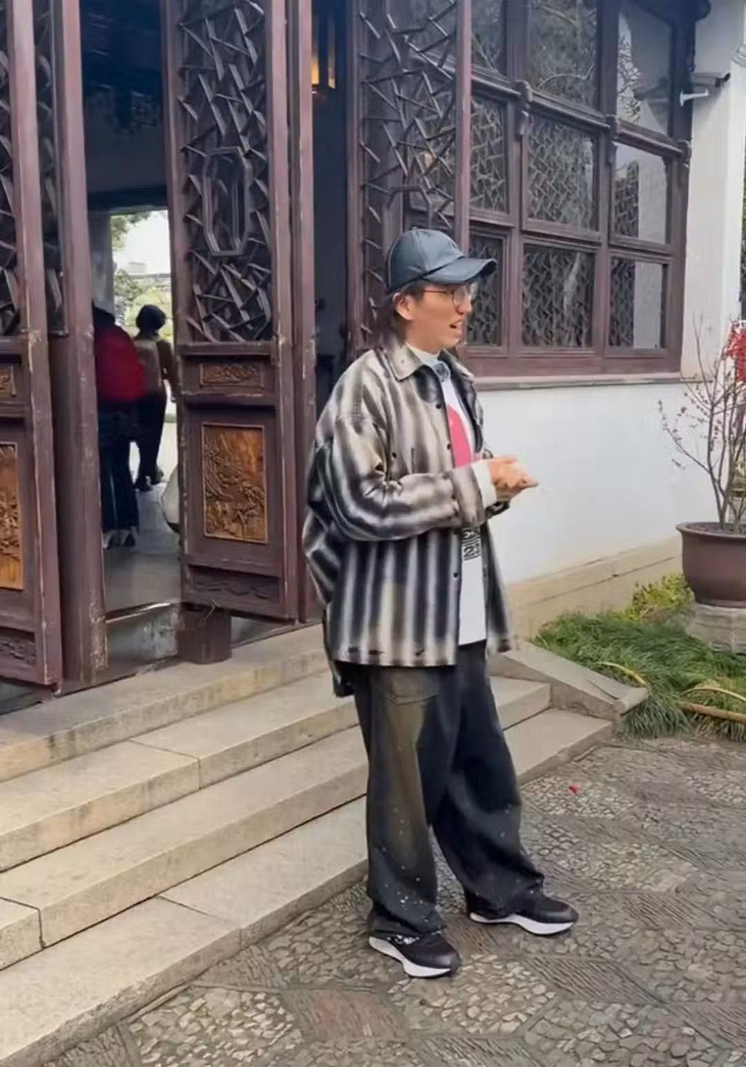 58歲林志炫游蘇州拙政園,化著濃妝,瘦到脫相,整個人蒼老了好多
