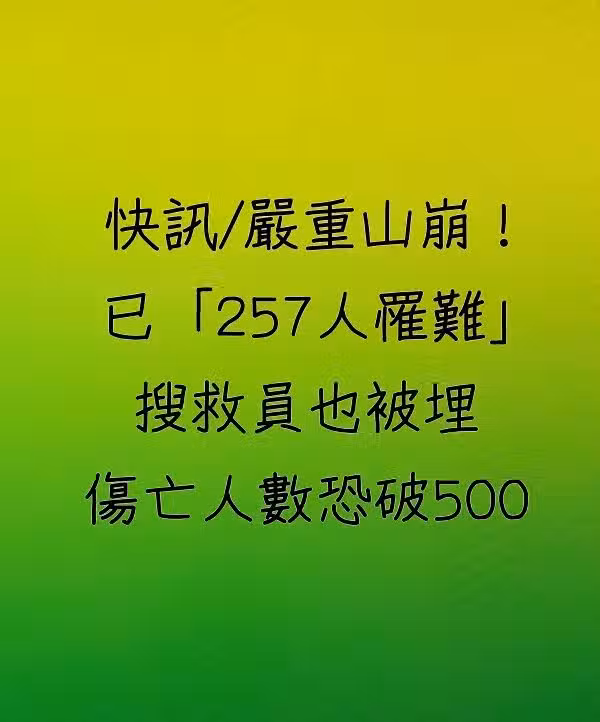 快訊 / 嚴重山崩!「257人已罹難」搜救員也被埋,傷亡人數破500