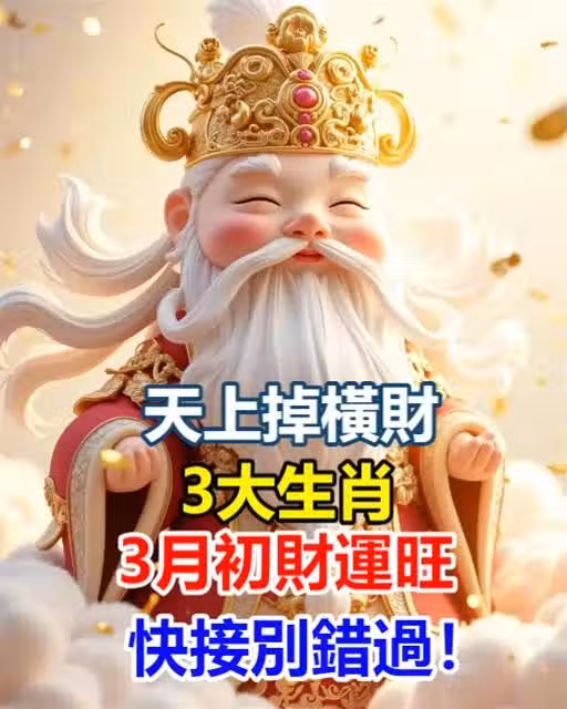 天上掉餡餅,天上掉橫財!3大生肖3月初財運旺,要發財,快接別錯過!