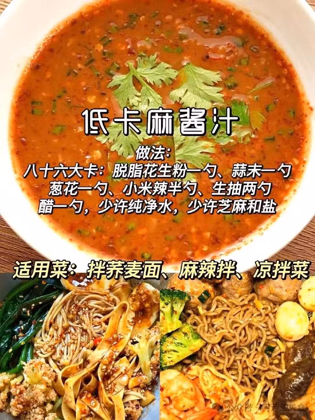低卡麻醬汁,很適合做一些麻辣拌和涼菜類的,麻醬的濃稠,再調好好味道後淋上去,又香又美味,吃了根本就停不下來的。