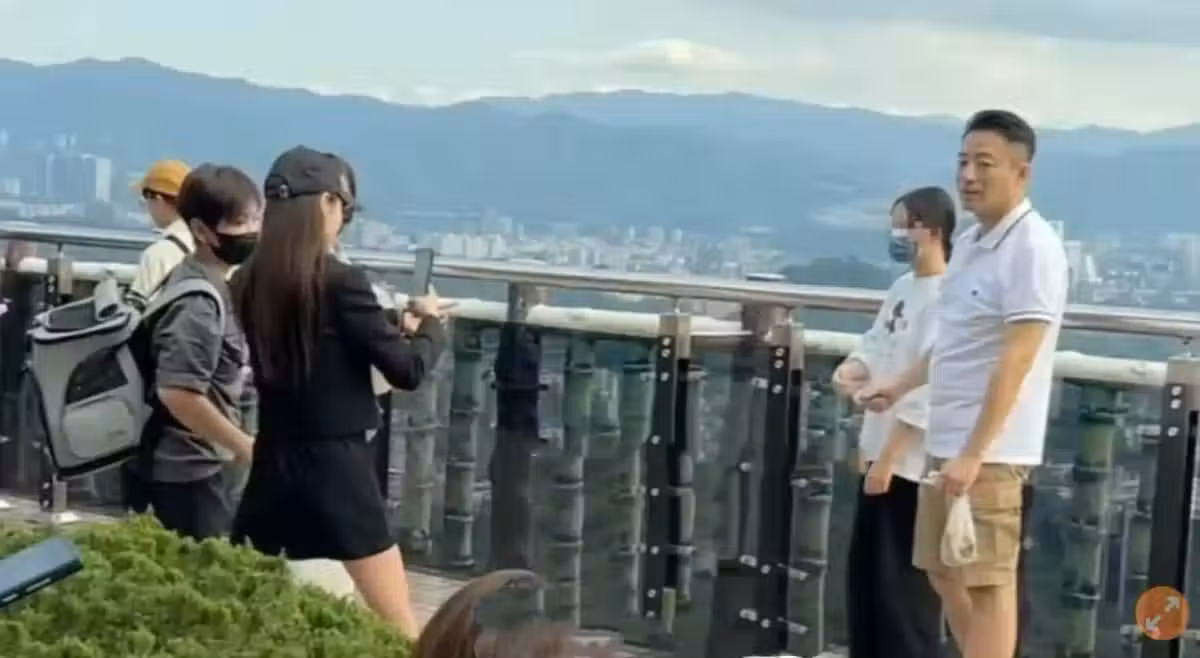 馬筱梅還給父女倆拍照,站在碧山岩能夠看到整個台北市。小玥兒一直都戴著口罩。