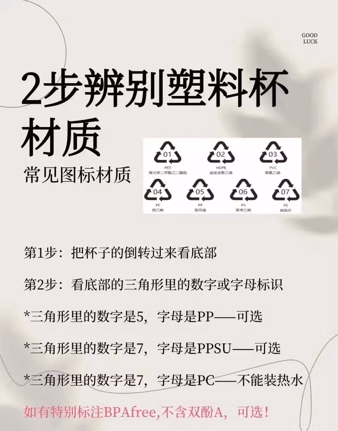 l只標註PC 材質的大肚杯, 可以喝水,但不建議用來喝熱水,因為它很可能釋放出對人體有害的雙酚 A。 l標註了BPA free 的PC 材質大肚杯,可以用來和熱水,代表產品已經經過檢測,析出的雙酚 A低於限值。