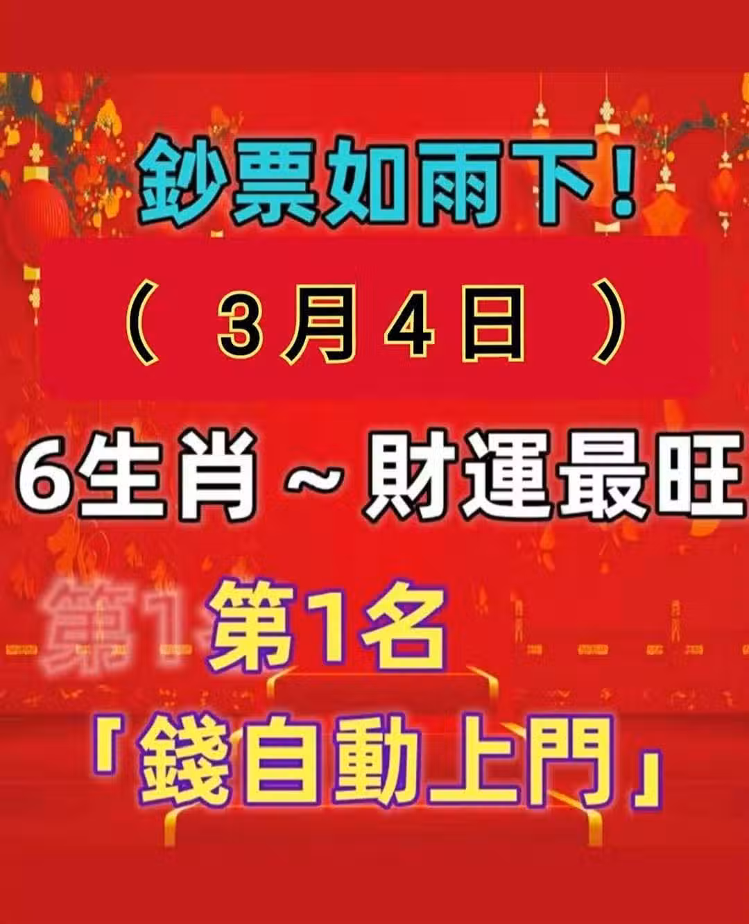鈔票如雨下!「3月4日」 6生肖 財運最旺,第1名「財自動上門」!