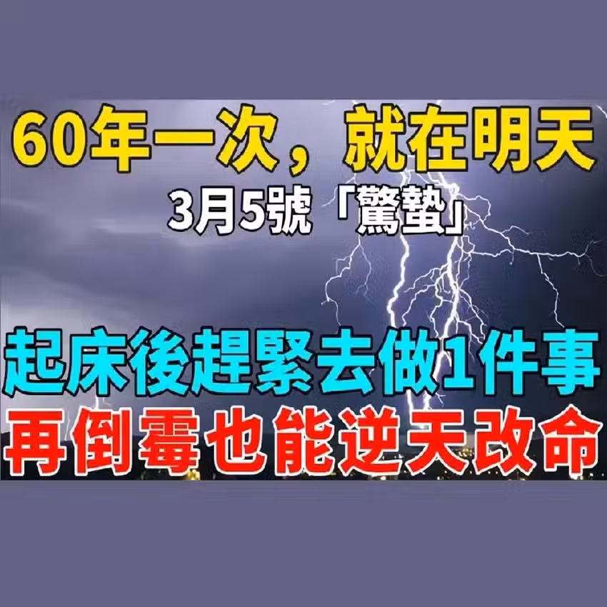 ⚡60年一次!就在明天!2025年3月5日「驚蟄」,起床後趕緊做這 1 件事,再倒霉也能逆天改命!🐉💰
