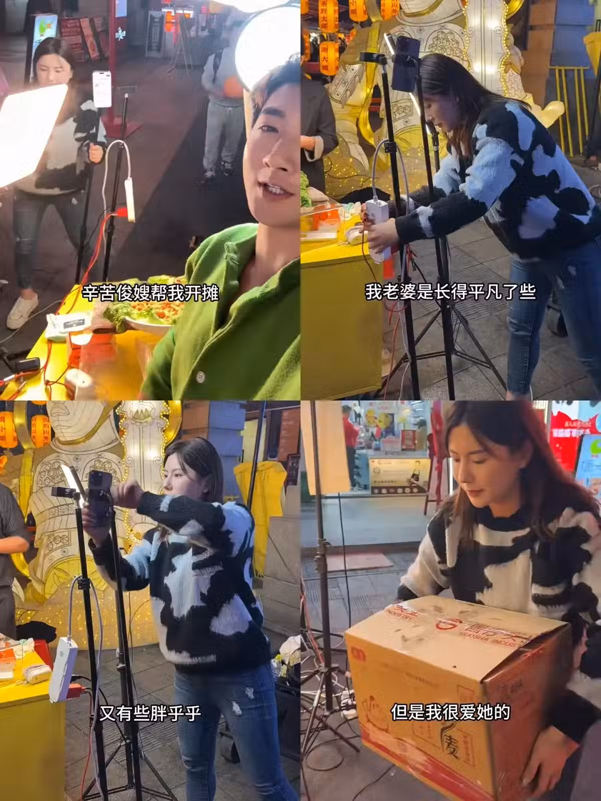 蔡淇俊(3日)在社媒上載短片,視頻中見到他在路邊開攤賣雞腳,老婆則不停為他做直播架設裝備,蔡淇俊感激老婆之餘,卻突然說出:「我老婆雖然是生得平凡了些,又有些胖乎乎,但是我很愛她的!」