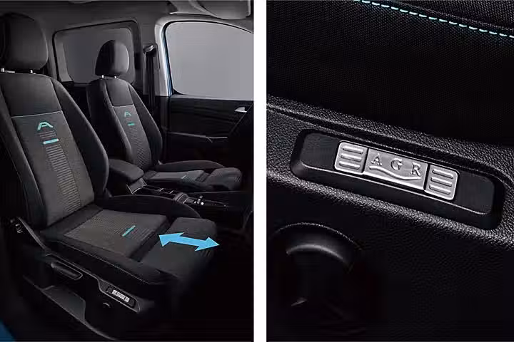 Active 車型雙前座採用專屬 AGR-Premium 人體工學座椅,具備了包含 Active 專屬標誌、腿部延伸支撐、8 向手動調整、4 向電動腰靠功能以及加熱功能。