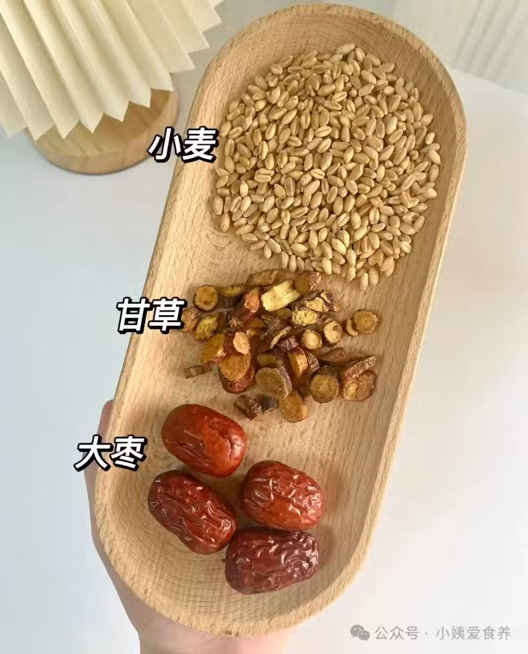 1⃣️準備甘草片10g、大棗15g、小麥30g