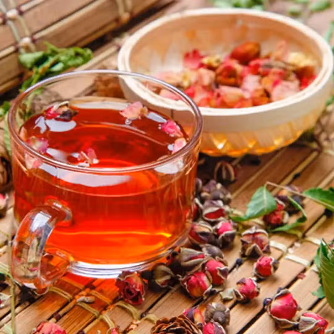 玫瑰花茶能降火氣、滋陰美容、調理血氣、促進血液循環、養顏美容,且有消除疲勞,癒合傷口,保護肝臟胃腸功能,長期飲用亦有助於促進新陳代謝。