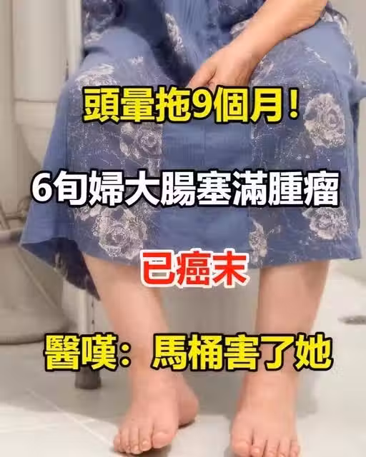 頭暈拖9個月!6旬婦「大腸塞滿腫瘤」已癌末,醫生嘆:馬桶害了她