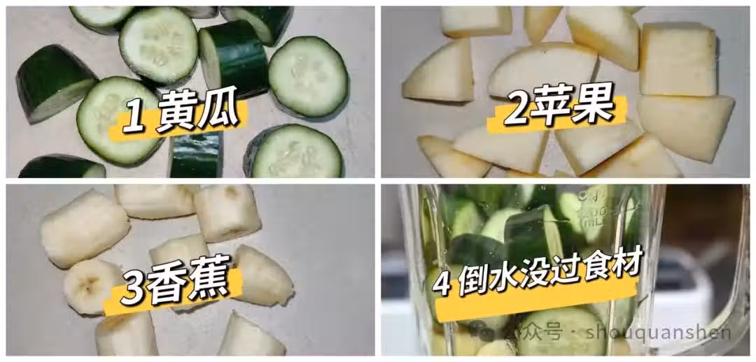所有食材洗凈後切塊,加300ml清水放入榨汁機,一分鐘搞定! ✅ 飲用小技巧: