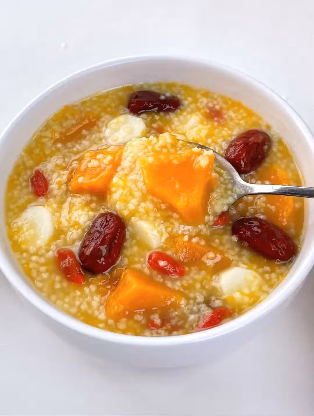 【食 材】:南瓜、山藥、小米、枸杞、紅棗