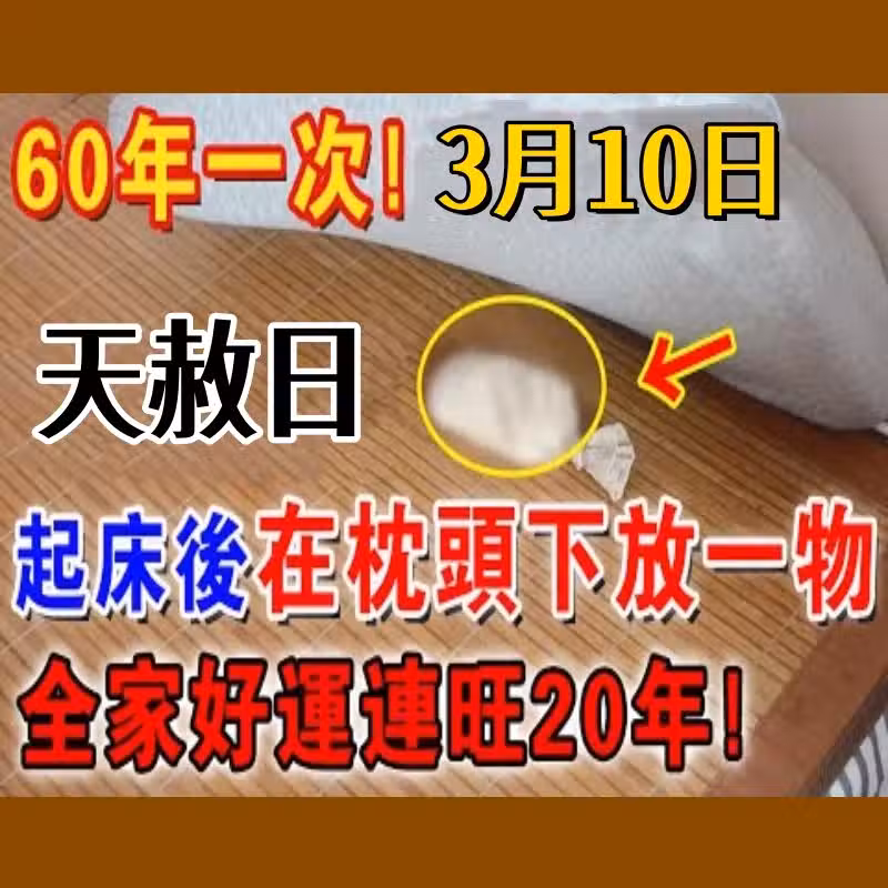 不是迷信!就在3月10號「天赦日」,起床牢記在枕頭下放一物,隔天就有橫財降臨!全家好運連旺20年!