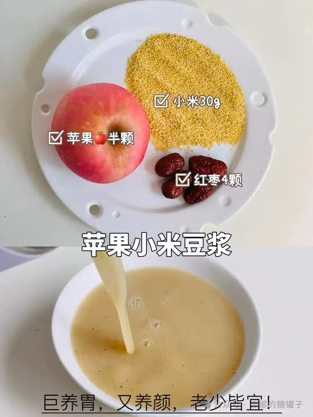 食材:蘋果半顆➕胡蘿蔔80g➕小米20g➕紅棗4顆。(油膩胃經常喝它,真的非常舒服。)