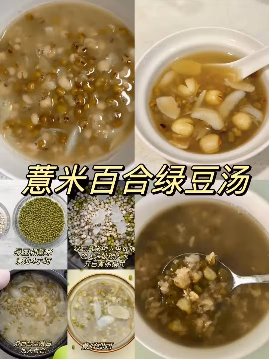 1. 清洗浸泡:綠豆、薏米洗凈後浸泡3~5小時;百合泡發或清洗(鮮百合無需泡發)。