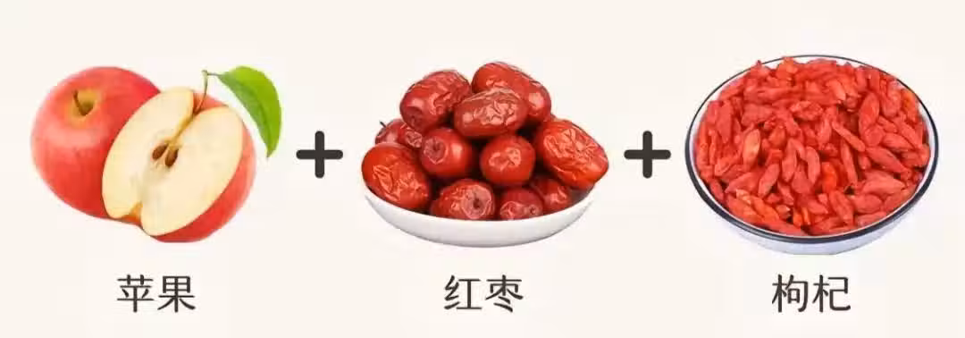 【作用】:枸杞營養豐富,和蘋果、紅棗搭配,腸道蠕動變積極,氣血也補起來了,臉色慢慢就變得紅潤有光澤