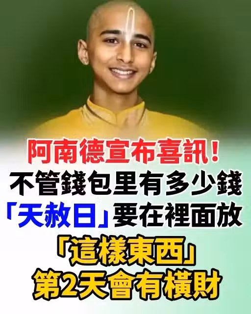 阿南德宣布天大喜訊!不管錢包里有多少錢,「天赦日」要在裡面放「這樣東西」第2天會有橫財!