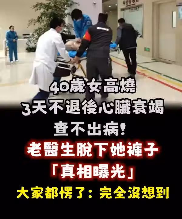 40歲女「高燒3天不退後心臟衰竭」 查不出病! 老醫生脫下她褲子「真相曝光」大家都愣了:完全沒想到…