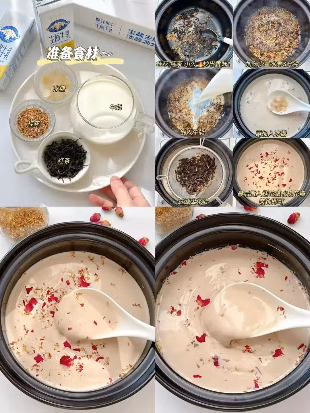 桂花、牛奶、紅茶、冰糖、玫瑰花