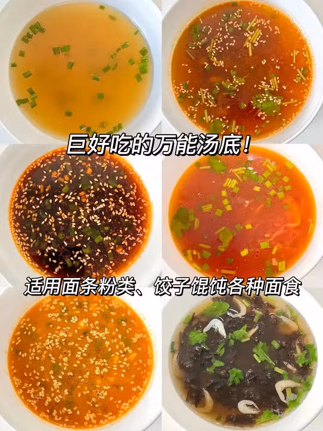 整理了六款巨好吃的湯底,分享給寶子們,有了這些配方,分分鐘搞定各類麵食,餃子,餛飩都可以!百搭又方便。