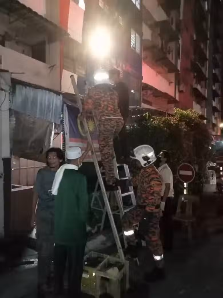 新山拉慶組屋區B棟發生墜樓案,男童從高樓墜下,落在鋅片涼逢屋頂上。