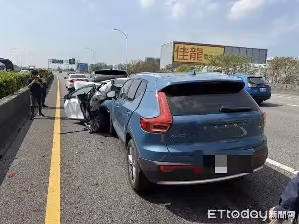 開車真的要保持行車距離!今(12)日上午10點多,國道1號南下180.5公里處,發生一起3車連環追撞意外。其中一輛白色小客車的52歲蔡姓女駕駛,因為被前後車包夾,「4門變2門」,造成頭部、腰部受傷,所幸送醫後沒有大礙。