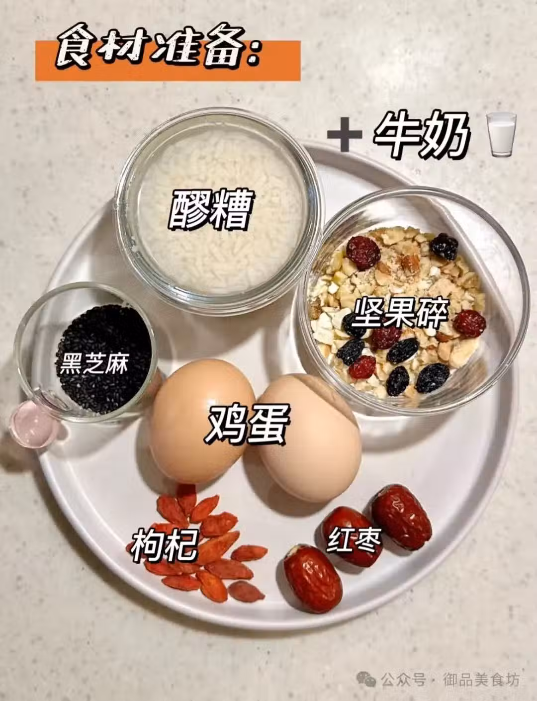 3️⃣牛奶煮開淋入打散的雞蛋⚠️等幾秒蛋花成型後撒上堅果碎或自己喜歡的小料。