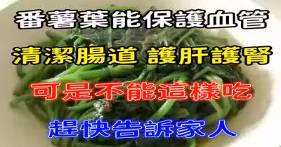 番薯葉能保護血管、清潔腸道、護肝護腎,可是不能這樣吃,可惜很多人不知道