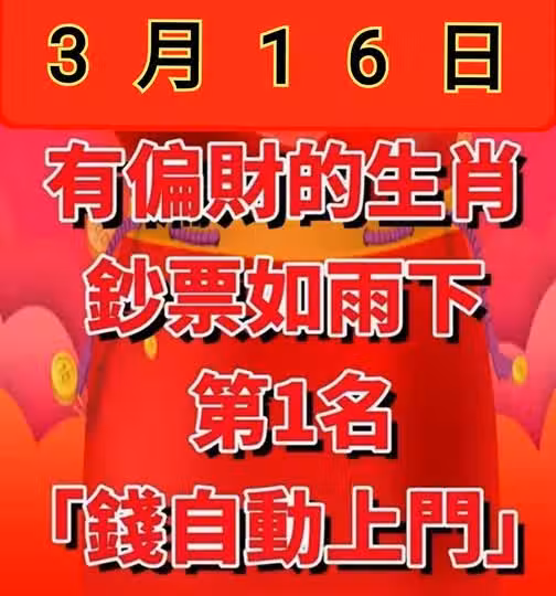 鈔票如雨下!「3月16日」 有偏財的生肖,第1名「財自動上門」