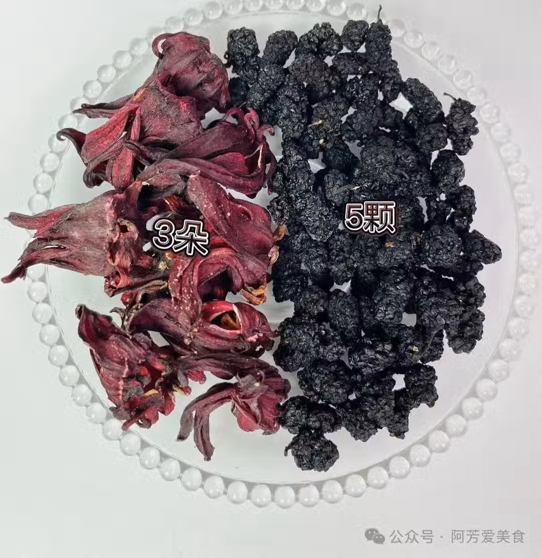 洛神花搭配桑葚,桑葚的香甜多汁融合洛神花,味道甜美又好喝,喝起來淡淡的清香,很適合日常喝。