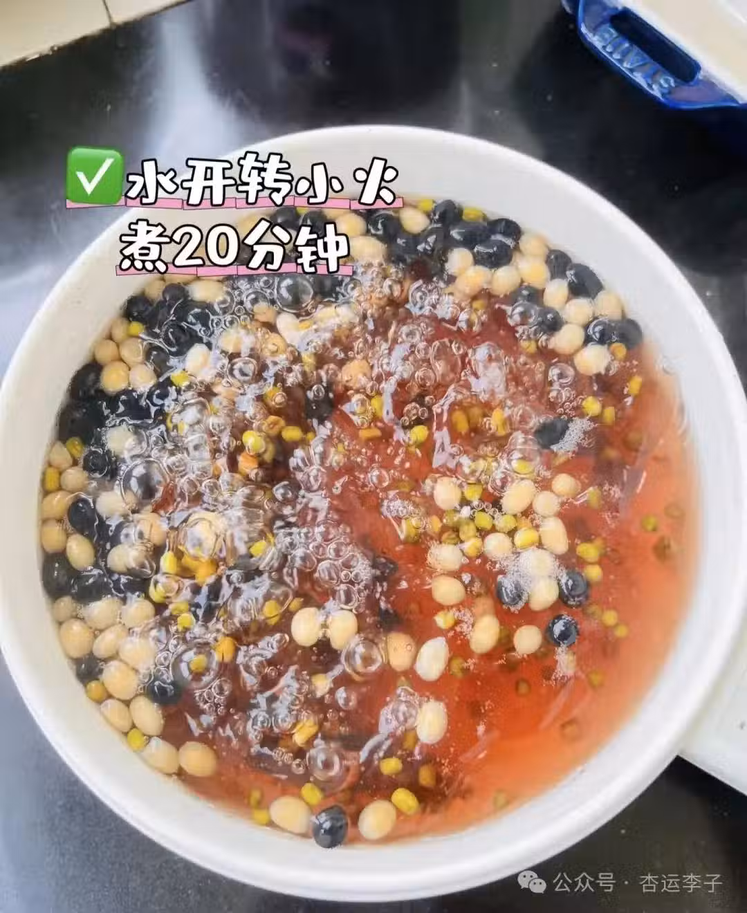 黃豆可以補脾,綠豆清肝熱清相火,黑豆可以補腎,烏梅能收斂肺氣,使肺部正常宣發,將體內的濁氣排出體外,補充津液。