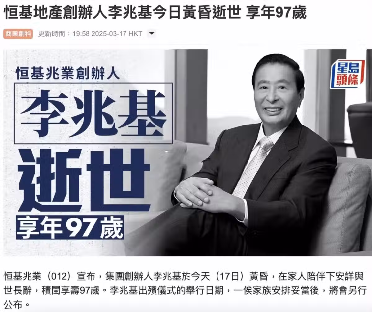 亞洲前首富李兆基去世,和李嘉誠並稱「香港雙李」,兒媳是徐子淇