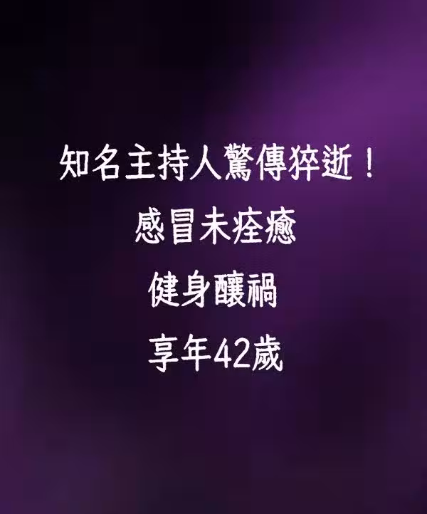 知名主持人驚傳猝逝!公司證實了「感冒未痊癒健身」釀禍 享年42歲