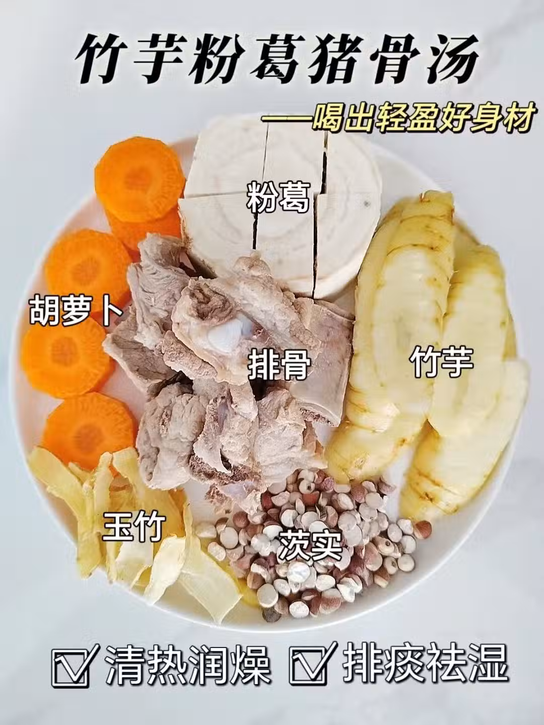 入夏濕氣纏身?熬夜加班總覺疲憊?一碗融合山野清潤與滋補力量的竹芋胡蘿蔔粉葛豬骨湯,堪稱都市人的「五臟充電站」。黃金食材CP功效解析:竹芋:嶺南民間"清補涼"代表,《本草求原》載其"清肺利濕",富含黏液蛋白,像給燥熱的脾胃敷上清涼麵膜;胡蘿蔔:β-胡蘿蔔素+維生素A黃金組合,拯救熬夜族的乾澀雙眼;粉葛:廣東阿媽最愛的祛濕神器,葛根素助力代謝循環,化解梅雨季的黏膩感;豬骨:慢火熬出天然膠原蛋白與鈣質,溫柔滋養筋骨。四重養生BUFF疊加:清熱不寒涼:竹芋+粉葛雙劍合璧,溫和驅散體內濕熱、脾胃充電站:胡蘿蔔多糖激活消化酶,竹芋澱粉護胃黏膜、免疫力加成:豬骨胺基酸+胡蘿蔔抗氧化劑構築防護盾、 熬夜修復力:葛根異黃酮調節內分泌,拯救垮臉星人。