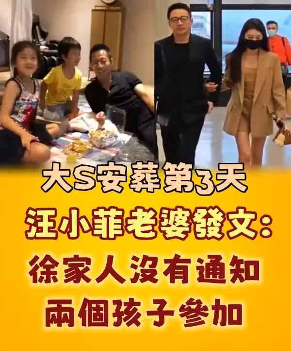 大S安葬第3天,汪小菲老婆發文:徐家人沒有通知兩個孩子參加!