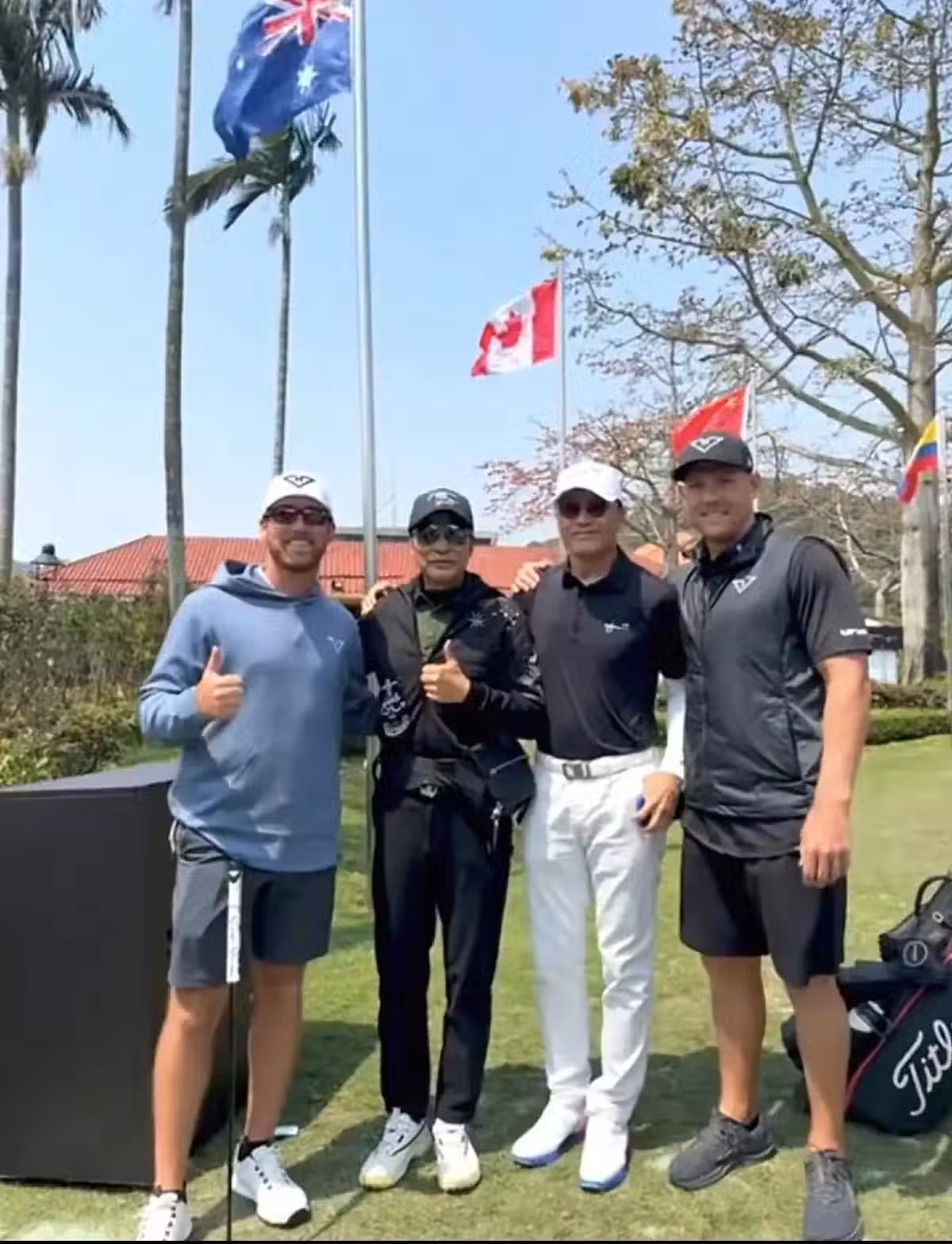 苗僑偉現身澳門參加高爾夫比賽,摟性.感美女拍照,比任達華高半頭