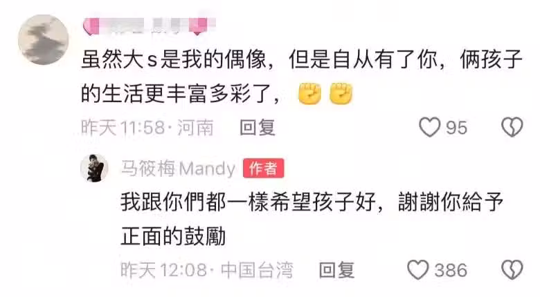 汪小菲妻子馬筱梅在3月19日也明確表示,她跟大家一樣都希望孩子好,也謝謝大家給予的正面鼓勵。