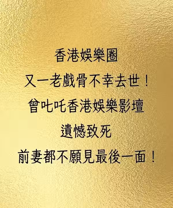 香港娛樂圈又一老戲骨不幸去世 曾叱吒香港娛樂影壇!遺憾致死,前妻都不願見最後一面!