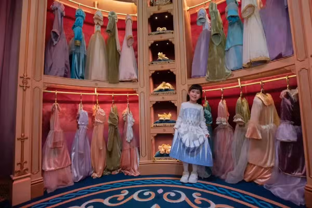 楊怡表示,女兒小珍珠很喜歡公主造型,所以就決定帶著女兒去迪士尼的魔法化妝廳體驗一下當公主。看著小珍珠化著公主妝,穿上白雪公主裙,戴搭配上公主髮型和皇冠,楊怡直言「別說小朋友開心,自己都看成心心眼了」。