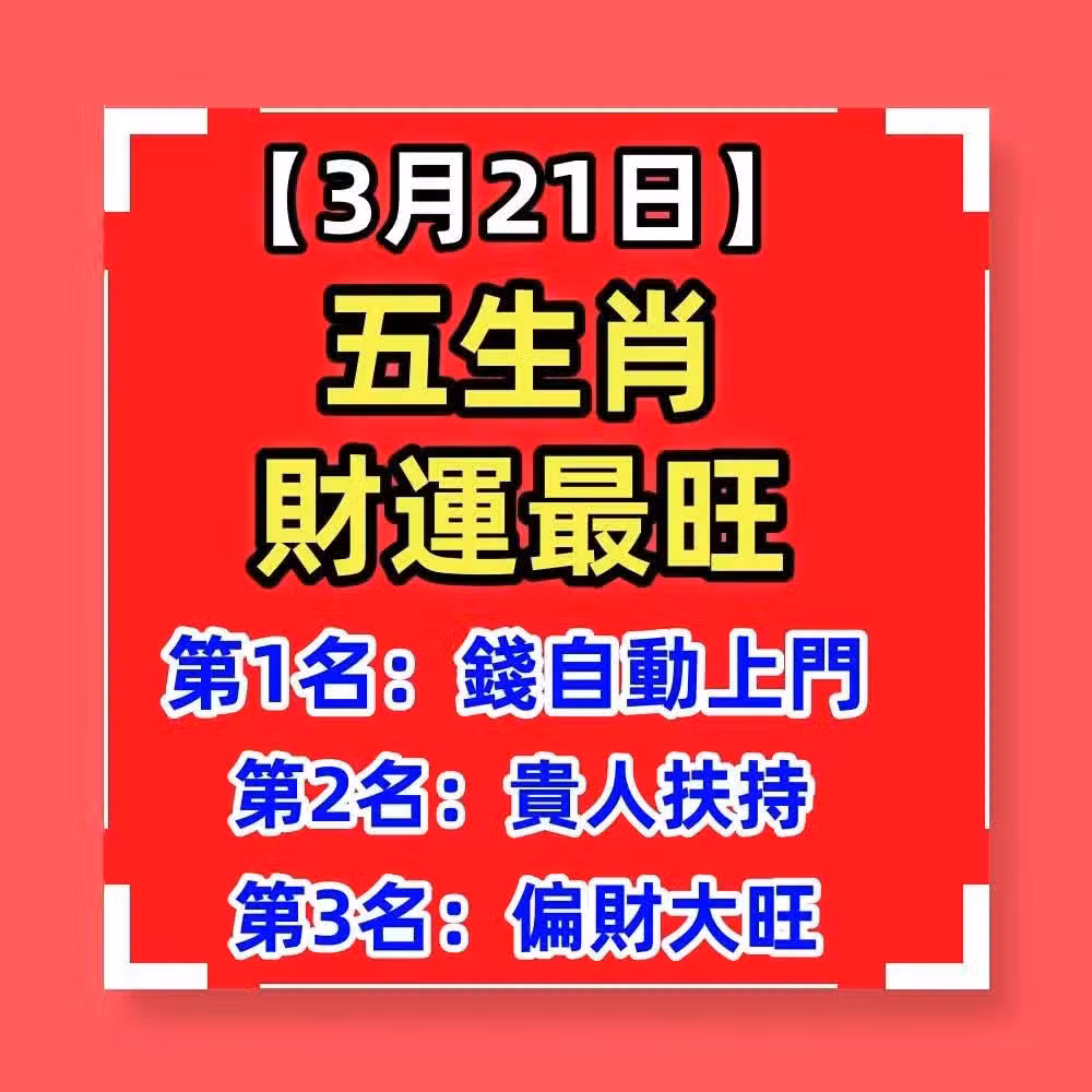 【3月21日】5生肖財運最旺,第1名「錢自動上門」