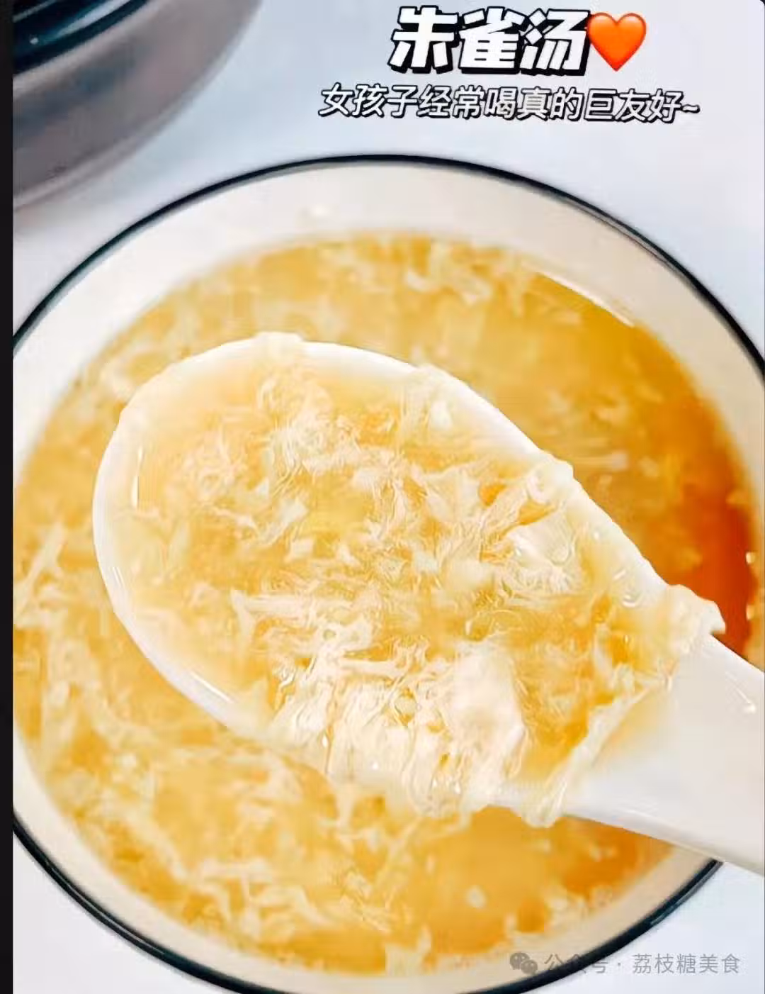 雞蛋可補脾胃,容易手腳冰涼、臉上又容易上火冒痘、流鼻皿,愛發脾氣,脾胃虛弱,晚上睡不踏實的姐妹們一定要試一下這碗滋陰潤燥、養❤️除煩氣皿翻湧的朱雀湯。