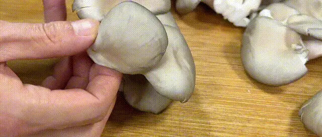 接著,將平菇放入大盆中,加入一勺食鹽和清水,抓拌均勻後浸泡10分鐘。泡好後多清洗幾遍,確保乾淨,然後控干水分,再用手撕成小塊。注意,一定要擠干水分,這樣炸出的蘑菇才會更加酥脆。