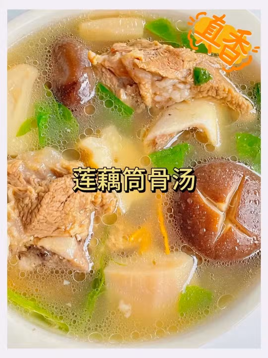 🛒豬筒骨、蓮藕、香菇、蔥段、薑片、青菜、麵粉、鹽