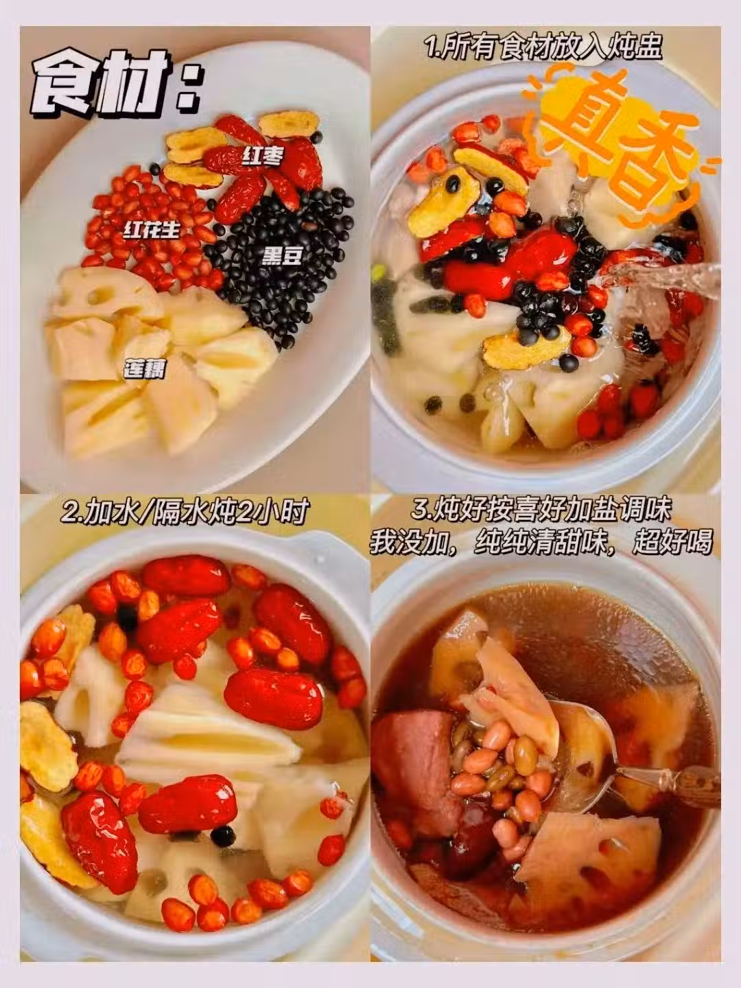 ①黑豆、花生提前浸泡,易燉爛。