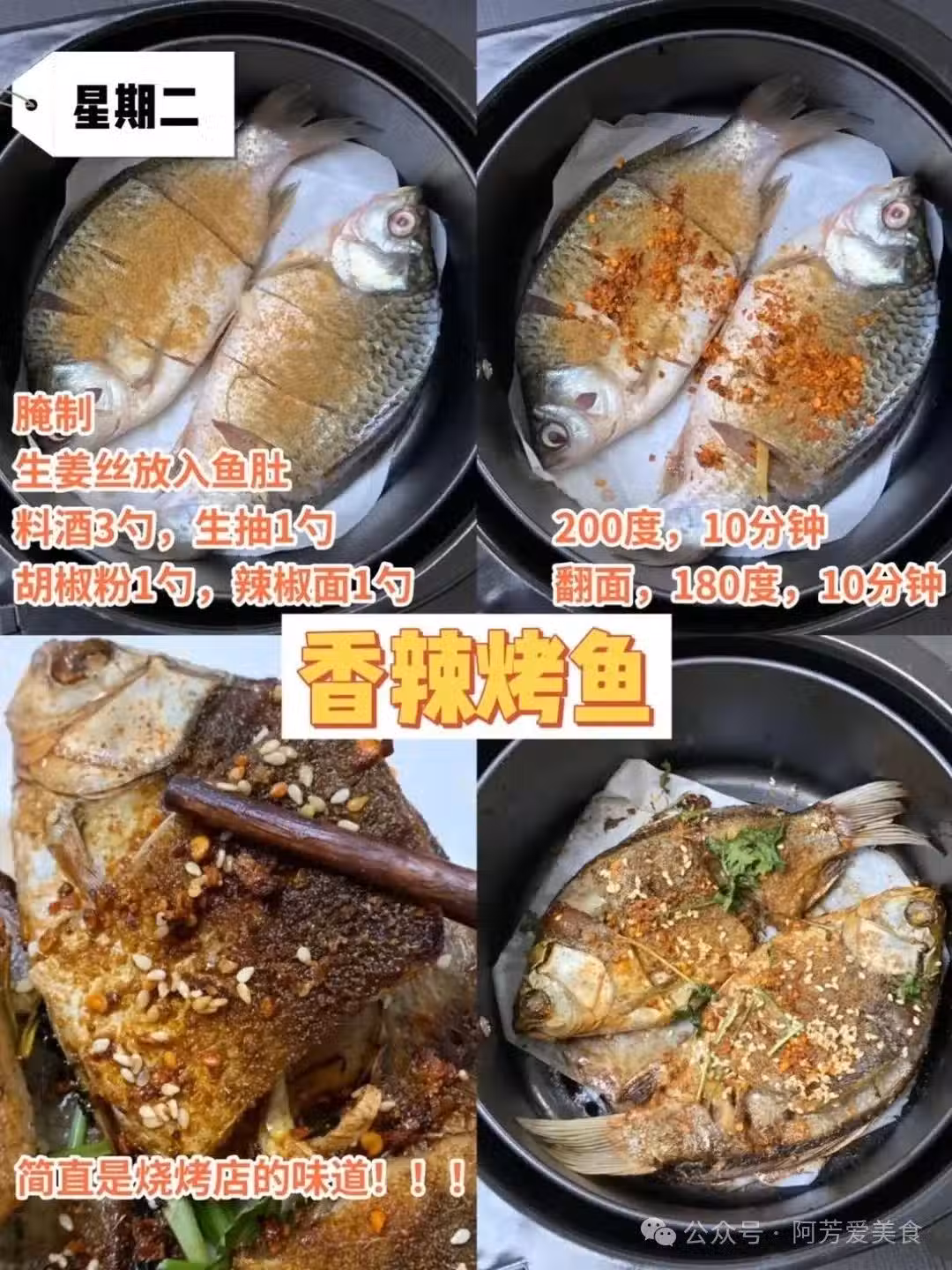 香辣烤魚這款非常的美味,比外面做的還好吃還健康。魚處理好後,在上面加入調料,記得一定要加料酒和生薑,這樣吃起來就沒有腥味了。 魚肉非常的軟嫩q彈,吃上一口讓人流連忘返,期待下次再吃。