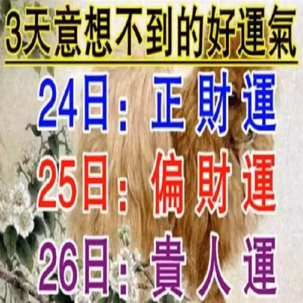 恭喜了7大生肖,在未來三天( 11月20~23日)即將有一筆橫財,準備好收錢吧