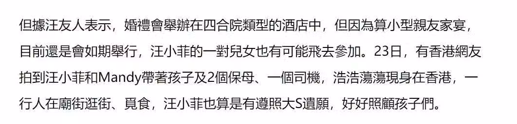 汪小菲5月大婚如期舉行,一雙兒女也會參加,婚禮地點及細節曝光